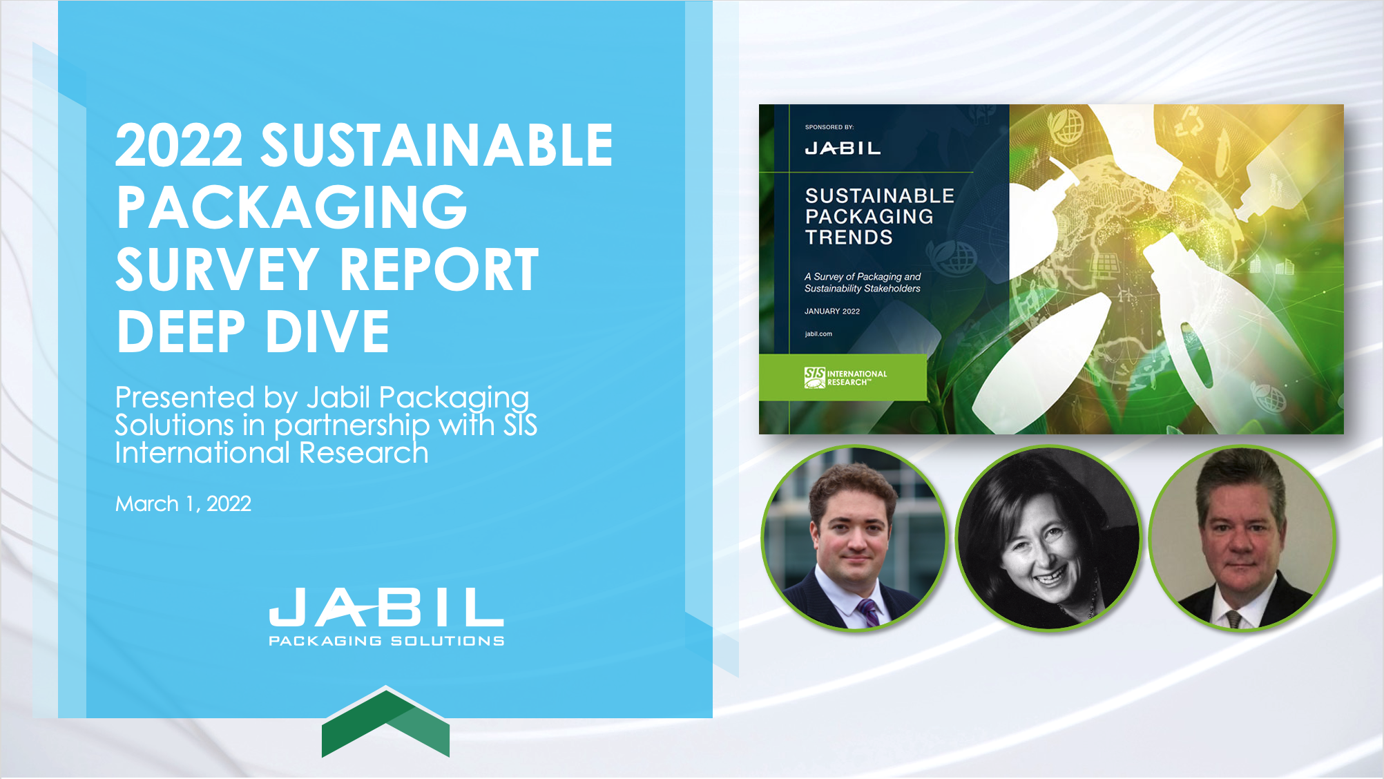 In a follow-up to our 2019 report that captured hard data on plans, challenges and opinions around sustainable packaging, Jabil partnered with SIS International Research to field an online survey to 186 packaging decision makers. Participants came from a variety of industries, including food and beverage, pet care, personal care, home care and industrials. Register for the webinar for a deep dive into the results and hear from our sustainability experts on the key takeaways for CPG brands.
